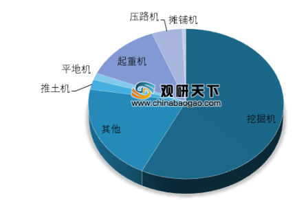 從市場結構來看,挖掘機為工程機械中的明星產品,占據市場絕對主流地位,2017年銷量占比為57.22%;其次為起重機,占比12.94%;壓路機和推土機銷量略低,分別占比5.18%和2.14%。四種產品合計占比77.47%。