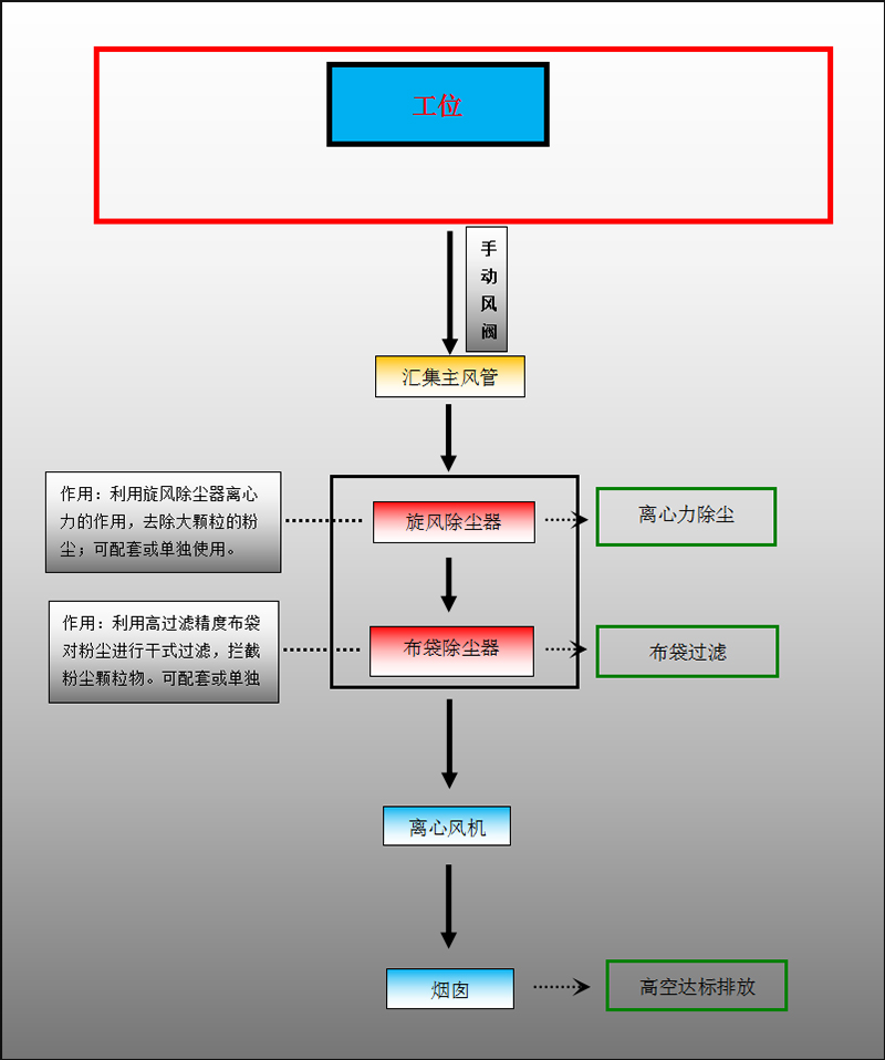 3) 解決工業(yè)未經(jīng)處理的粉塵不能滿足環(huán)保要求。